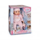 Poznaj lalkę BABY born Annabell 43 cm – mięciutką przyjaciółkę do codziennej zabawy i przytulania. Dzięki funkcjom elektronicznym realistycznie porusza ustami, otwiera i zamyka oczy, reaguje na smoczek i karmienie z butelki, potrafi się ukołysać do snu i zaskakuje zabawnymi dźwiękami przy łaskotkach lub podczas „niemowlęcej gimnastyki”.