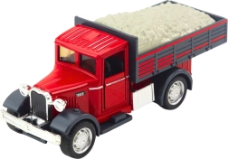 Realistyczny model klasycznej ciężarówki ucieszy małych i dużych fanów pojazdów roboczych. Wiernie odwzorowana kabina z otwieranymi drzwiami, połączenie metalowych części i wysokiej jakości plastiku oraz solidna zabudowa nadają zabawce autentyczny wygląd i długą żywotność. Po pociągnięciu do tyłu pojazd dzięki napędowi pull-back sam rusza do przodu.