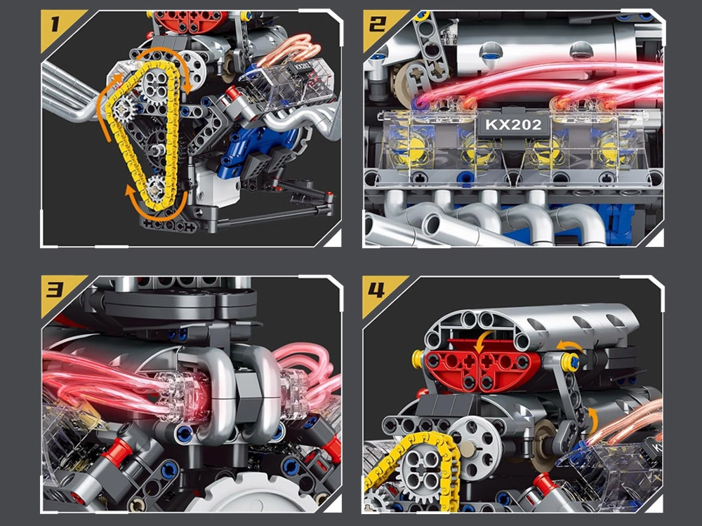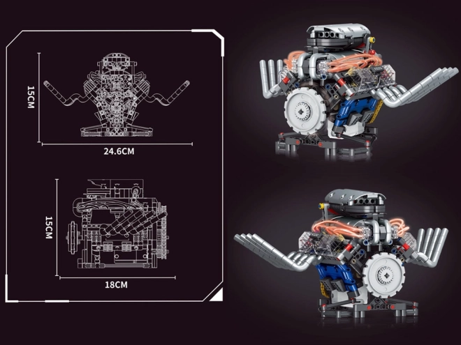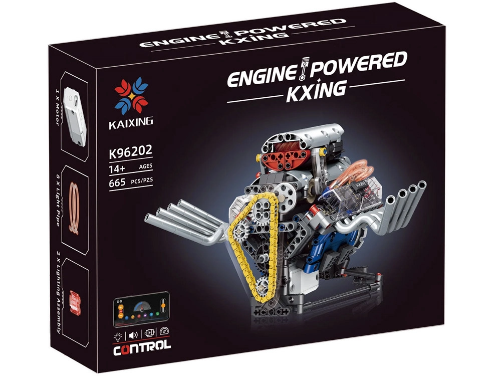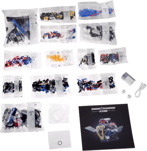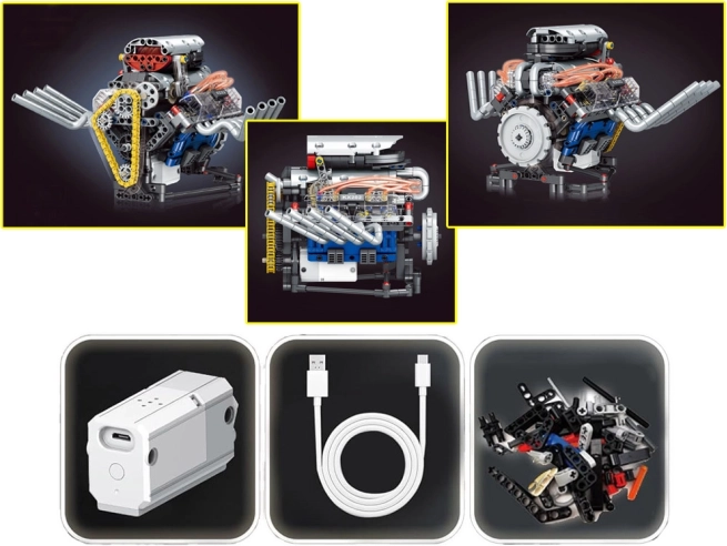 Techniczny zestaw silnika z akumulatorem, światłem i ruchem. 665 elementów, ładowanie USB, realistyczne funkcje. Świetna edukacyjna zabawa dla pasjonatów techniki.