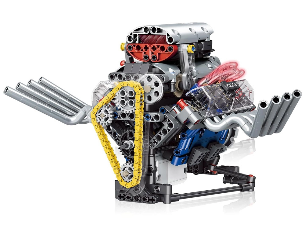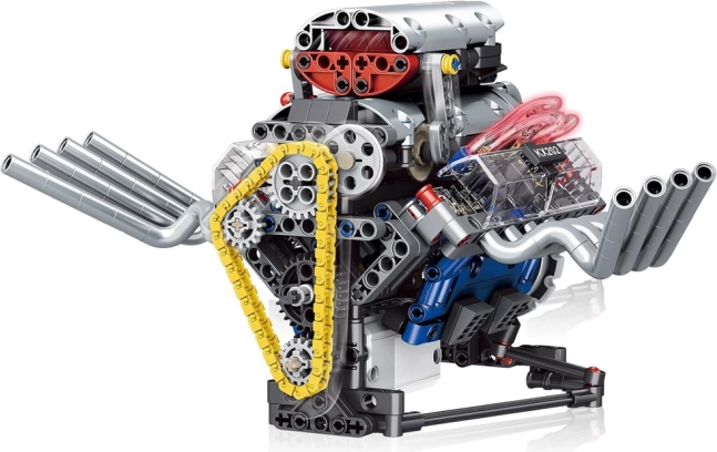 Techniczne klocki konstrukcyjne – zbuduj działający silnik z akumulatorem, światłem i ruchem (665 elementów)