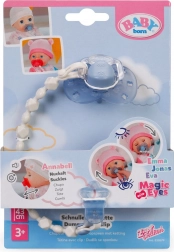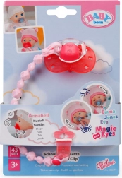 Podaruj swojej lalce realistyczną opiekę dzięki smoczkowi z klipsem, który łatwo przypiąć do ubranka i który dzięki zapięciu się nie zgubi. Jest w pełni kompatybilny z lalkami BABY born i Baby Annabell w rozmiarze 43 cm i wykorzystuje ich inteligentne funkcje – podczas ssania lalki wydają charakterystyczne dźwięki, a po delikatnym przekręceniu smoczka mogą zamknąć oczy i „zasnąć”.