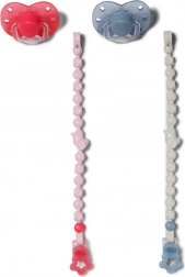 Smoczek jest przymocowany do klipsa/łańcuszka, który łatwo przypniesz do ubranka lalki. Dzięki temu zawsze jest pod ręką i nie zgubi się podczas zabawy.