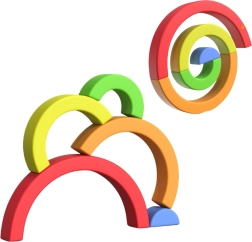 Dzięki pięciu elementom o różnych rozmiarach dzieci mogą układać łuki, tunele i oryginalne konstrukcje. Zabawka wspiera rozwój motoryki małej, koordynacji ręka–oko oraz wyobraźni przestrzennej – a to wszystko całkowicie bezpiecznie dzięki miękkiemu materiałowi pozbawionemu ostrych krawędzi.