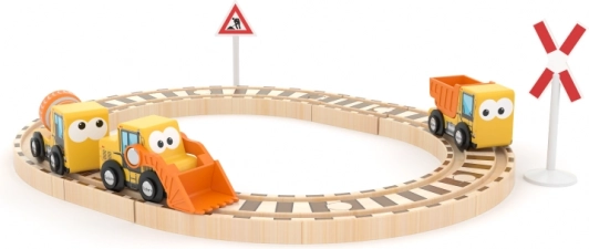 Odkryj zabawny drewniany zestaw do zabawy z torem kolejowym i maszynami budowlanymi, który wspiera wyobraźnię, motorykę małą oraz kreatywną zabawę. Wykonany z ekologicznie zrównoważonego drewna bez chemikaliów. Idealny dla dzieci od 18 miesięcy.