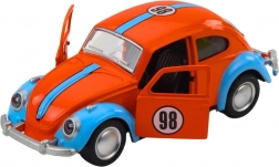Klasyczna sylwetka garbusa z pasami wyścigowymi i numerem 98 sprawia wrażenie mini repliki auta wyścigowego – idealna do zabawy i ekspozycji.