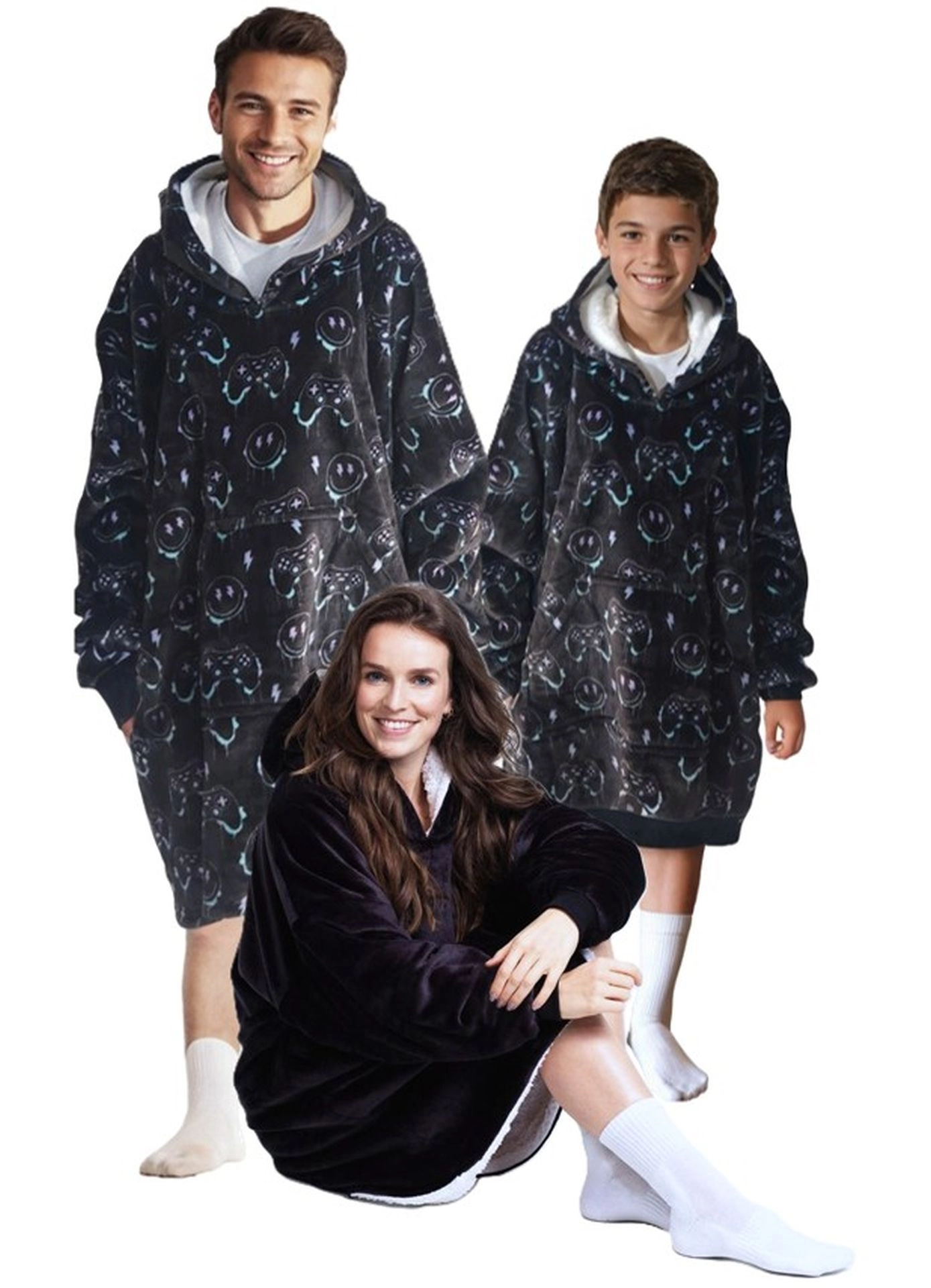 Ta oversize’owa koc-bluza z kapturem ogrzeje przy każdej okazji – w domu przed telewizorem, podczas grania i na zewnątrz przy ognisku. Wewnętrzna warstwa z sherpa fleece jest niezwykle ciepła i miękka, a zewnętrzny flanela przyjemnie delikatny w dotyku. Luźny krój nie ogranicza ruchów i zapewnia przytulną przestrzeń do odpoczynku.
