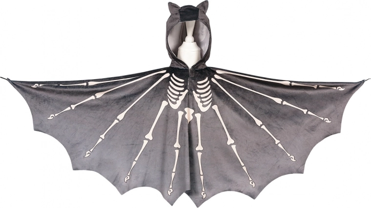 Ten oryginalny kostium nietoperza to świetny wybór dla dzieci, które kochają fantazję i przebieranki. Lekka peleryna z kapturem zapewnia wygodę i swobodę ruchów, a realistyczny nadruk kości i skrzydeł nadaje kostiumowi wyrazisty wygląd. Dzięki prostemu zapięciu na rzep dzieci mogą ubierać się samodzielnie.