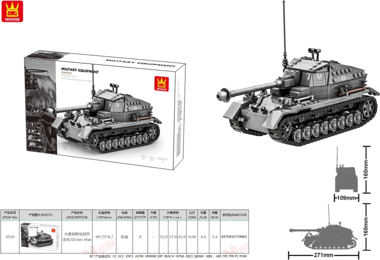 Zbuduj szczegółowy szary czołg z wysokiej jakości klocków dla dzieci od 6 lat. Zestaw zawiera 632 elementy, oferuje solidną i wytrzymałą konstrukcję i to świetny prezent dla małych konstruktorów i miłośników techniki wojskowej.