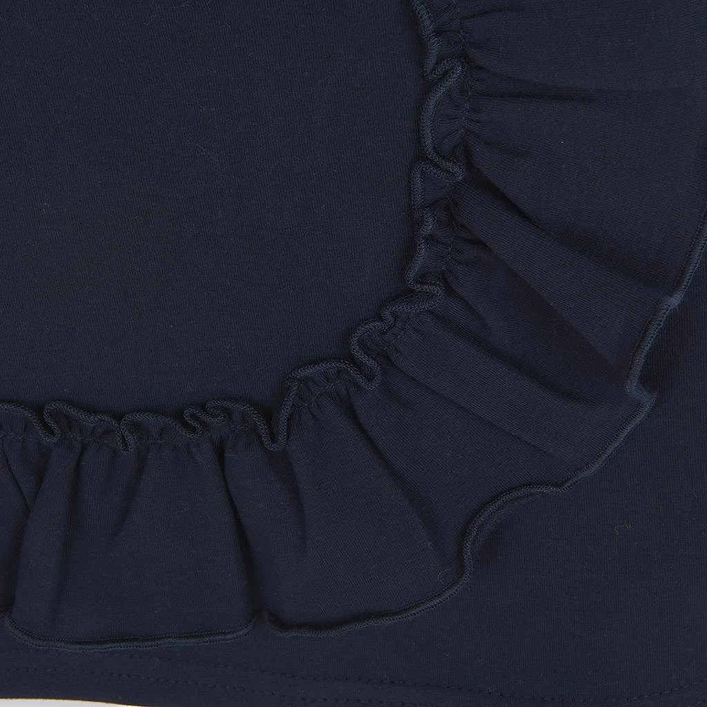 Odkryj czarujący zestaw NEW BABY Butterflies stworzony z myślą o wrażliwej skórze dziecka i komforcie noszenia. Delikatna koszulka ze 100% bawełny zdobiona jest subtelnym motywem motylków, ma krótkie, marszczone rękawki oraz praktyczne zapięcie na ramię. Spódniczka w ciemnoniebieskim kolorze z elegancką falbanką dodaje stylu, a dzięki szerszej gumie w pasie doskonale leży, nie uciskając maluszka.