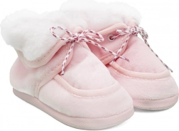 Różowe buciki niechodki New Baby zachwycają delikatnym wyglądem i praktycznym wykonaniem. Wnętrze wyłożone jest miękką dzianiną polarową (100% poliester), która świetnie izoluje i utrzymuje stałe ciepło. Szersza przestrzeń na palce wspiera naturalny ruch i komfort maluszka.