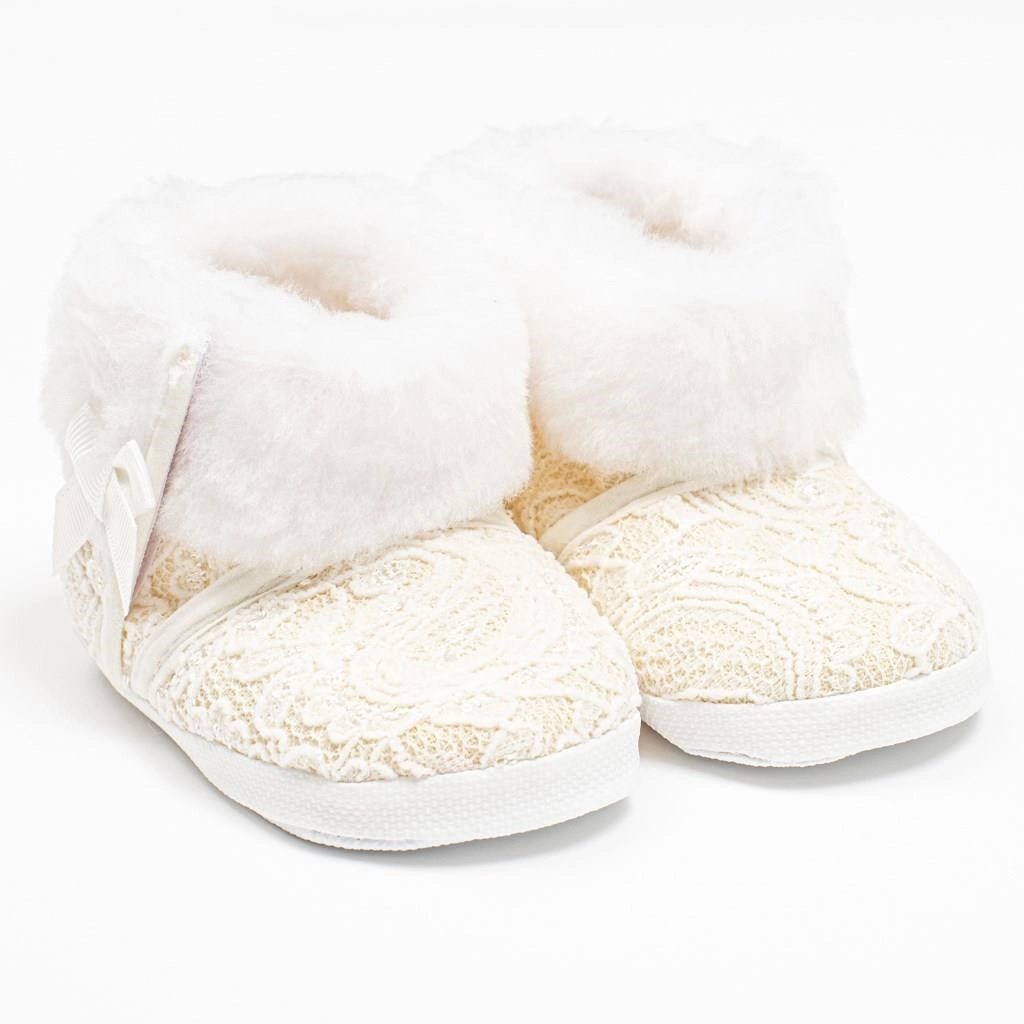 Niemowlęce zimowe koronkowe kozaczki New Baby, beżowe (0–3 miesiące)