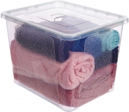 Pokrywka zamyka się na delikatny zatrzask i pomaga chronić przechowywane przedmioty przed kurzem i nadmierną wilgocią. Zaokrąglone rogi zwiększają bezpieczeństwo użytkowania. Pojemnik jest idealny na tekstylia, zabawki, odzież, akcesoria kuchenne, narzędzia, książki czy dokumenty – znajdzie zastosowanie w kuchni, spiżarni, salonie, garażu i biurze. Przy zakupie kilku sztuk można je bezpiecznie piętrować.