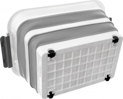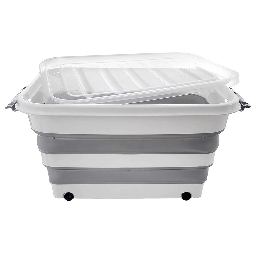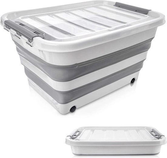 Pojemnik wykonany jest z trwałej gumy TPR w połączeniu z wysokiej jakości plastikiem, dzięki czemu sprawdzi się w codziennym użytkowaniu w domu, w warsztacie i w ogrodzie. Składana konstrukcja pozwala złożyć pojemnik do wysokości ok. 9,5 cm, co oszczędza miejsce, gdy nie jest używany. Idealny do przechowywania pościeli, zabawek, ubrań, tekstyliów, książek i innych domowych akcesoriów.