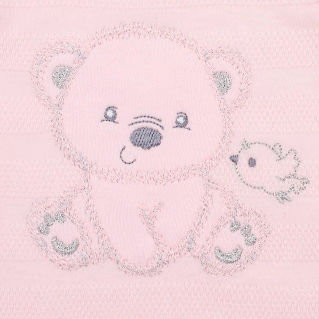 Uroczy 4‑częściowy zestaw niemowlęcy New Baby Sweet Bear w kolorze różowym jest idealny do szpitala i na pierwsze tygodnie w domu. Zawiera body rozpinane na całej długości z długim rękawem, pajacyk, kaftanik i czapeczkę z 100% bawełny. Wygodne napy ułatwiające przewijanie, miękki materiał delikatny dla skóry oraz subtelny haft misia i ptaszka sprawiają, że zestaw jest praktyczny i stylowy.
