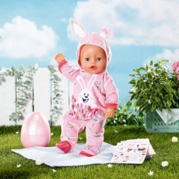 Ubranko jest łatwe do założenia nawet dla małych rączek, co ułatwia przebieranie lalki BABY born. W zestawie znajdują się także naklejki do wielkanocnego dekorowania.