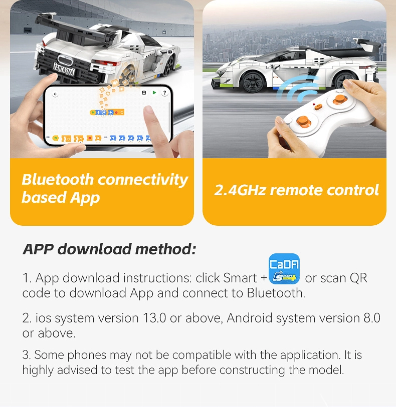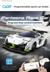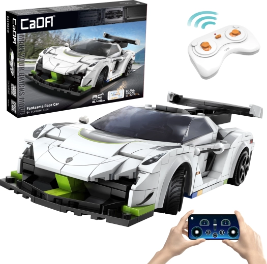 Zbuduj własny samochód wyścigowy i rusz na tor! Zestaw CaDA FANTASMA Race Car oferuje 322 elementy, zdalne sterowanie RC oraz Dual Mode – sterowanie pilotem 2,4 GHz lub przez aplikację Bluetooth. Realistyczne białe nadwozie z czarnymi i limonkowymi detalami, gumowe koła dla płynnej jazdy oraz prędkość do 5,7 km/h gwarantują świetną zabawę i efektowną ekspozycję.