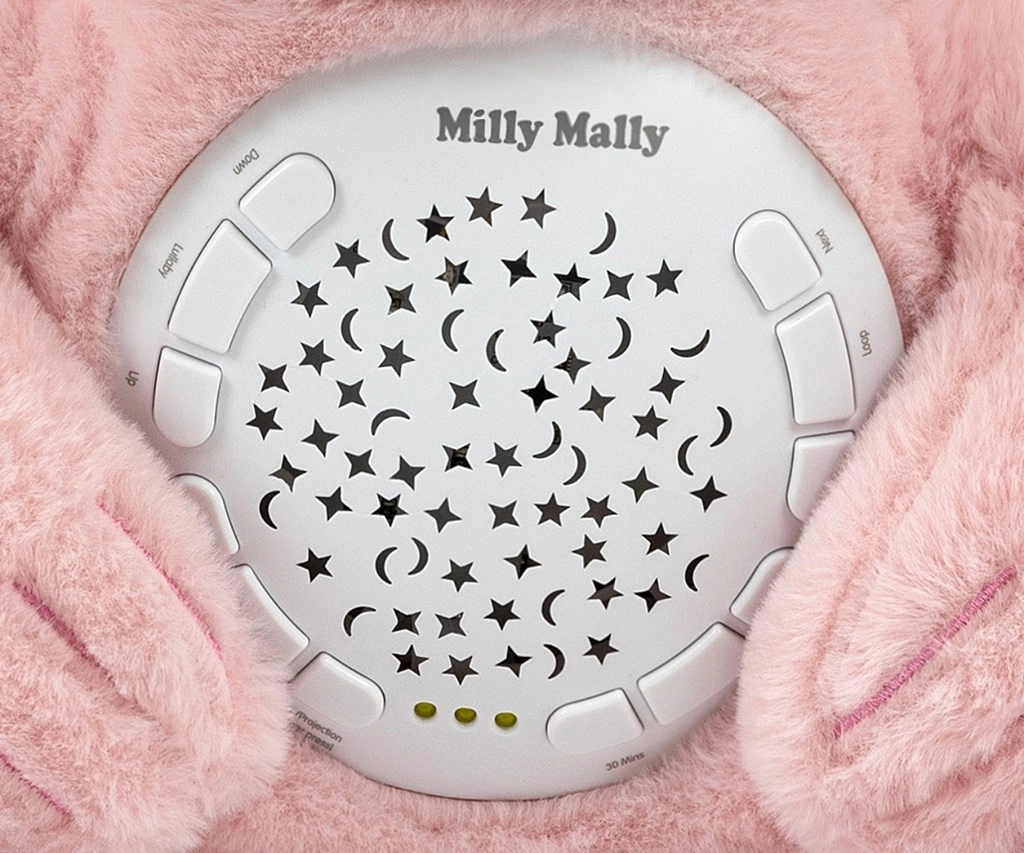 Pluszowy miś MILLY MALLY zapewnia dzieciom spokojny sen i poczucie bezpieczeństwa. Zintegrowany projektor wyczaruje na suficie i ścianach delikatne gwiazdy, a kojące melodie i biały szum pomogą się zrelaksować i szybciej zasnąć. Miękkie, aksamitne wykonanie zachęca do przytulania i jest odpowiednie już od urodzenia.