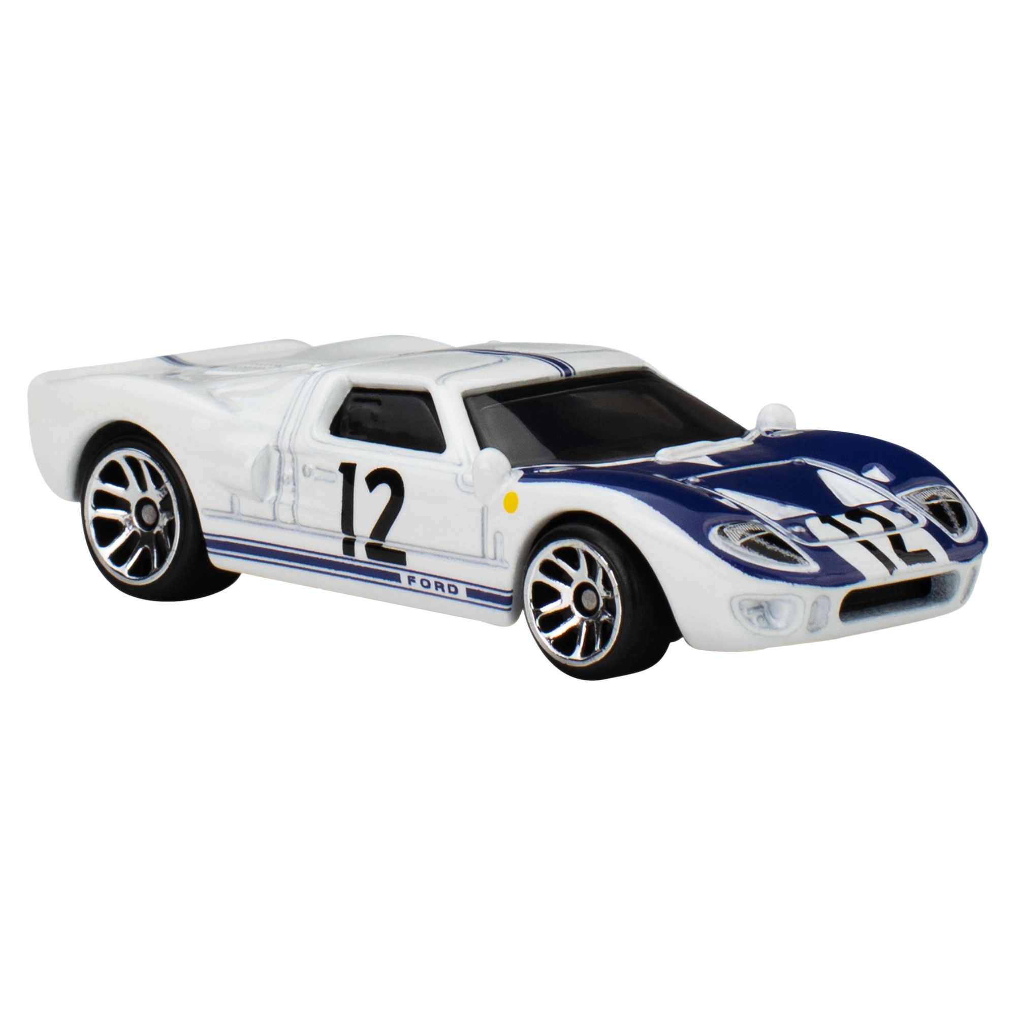 Ikoniczny model FORD GT40 z serii Hot Wheels Silver Series – National Icons w skali 1:64. Metalowe nadwozie, realistyczne detale, ruchome koła oraz białe malowanie z niebieskimi pasami i numerem 12 ucieszą dzieci i kolekcjonerów.