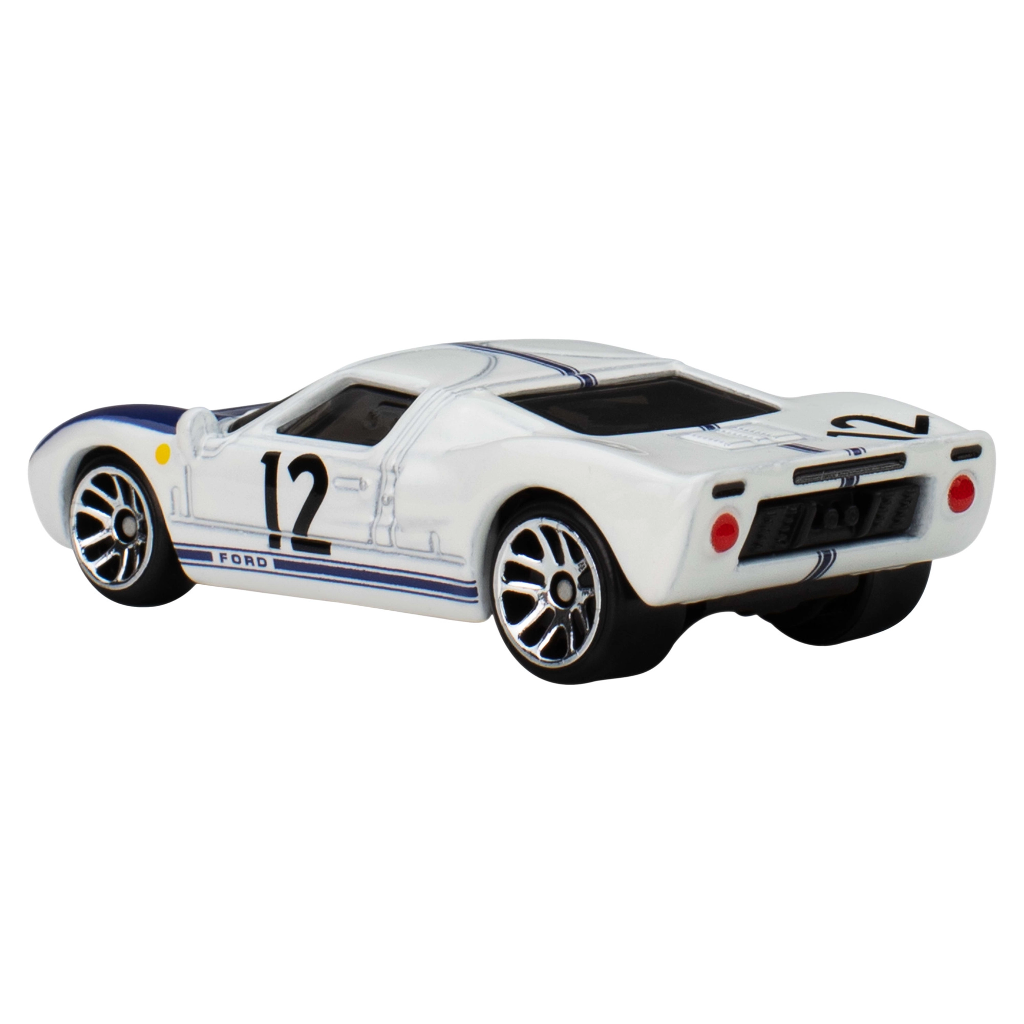 Odkryj legendę torów wyścigowych w kieszonkowym rozmiarze. Ten szczegółowo wykonany model Ford GT40 od Mattel Hot Wheels oferuje autentyczny wygląd z białym lakierem, niebieskimi pasami i numerami startowymi. Dzięki metalowej konstrukcji model jest trwały i świetnie leży w dłoni oraz w gablocie.