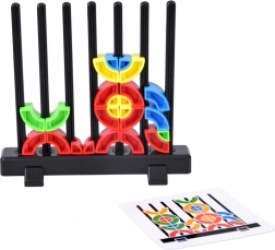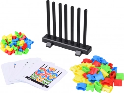 Odkryj mądrą zabawkę, która łączy naukę kolorów i kształtów, trening motoryki małej oraz logiczne myślenie. Dzieci nakładają kolorowe elementy na pionowe patyczki i według dołączonych kart tworzą geometryczne wzory lub własne pomysły. Wytrzymałe plastikowe elementy, wyraziste kolory i mnóstwo wyzwań czynią z niej świetną pomoc Montessori dla przedszkolaków.