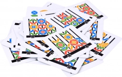 - podstawa z patyczkami, 36 dużych elementów (4 kolory), 36 małych elementów (4 kolory), 30 kart ze wzorami