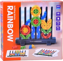 W zestawie znajdują się karty ze wzorami, według których dzieci układają kolorowe elementy na patyczkach – albo tworzą własne pomysły i rozwijają kreatywność.