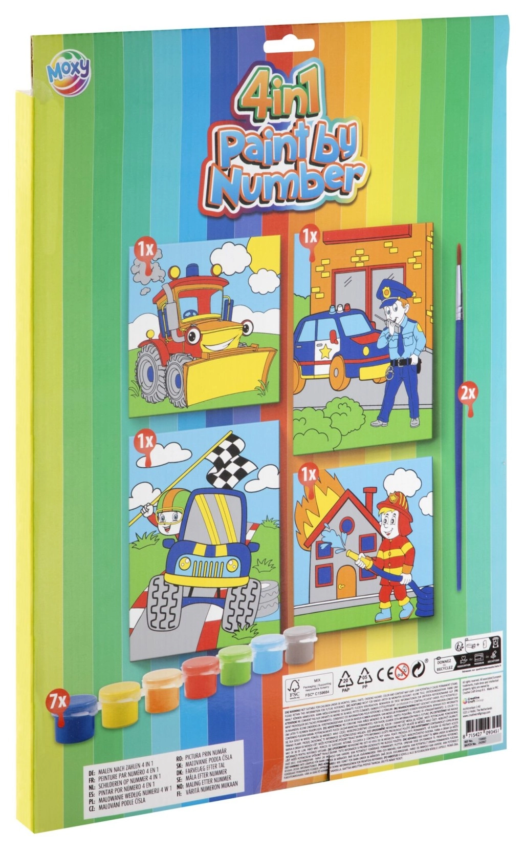 Odkryj zabawny świat tworzenia z kreatywnym zestawem malowanie po numerach 4w1 dla chłopców. Zestaw zawiera 4 wstępnie nadrukowane obrazki z motywami dla chłopców, farby akrylowe, pędzel oraz instrukcję. Każdy numer odpowiada kolorowi, dzięki czemu malowanie jest łatwe i zabawne, a także rozwija cierpliwość, koncentrację oraz małą motorykę.