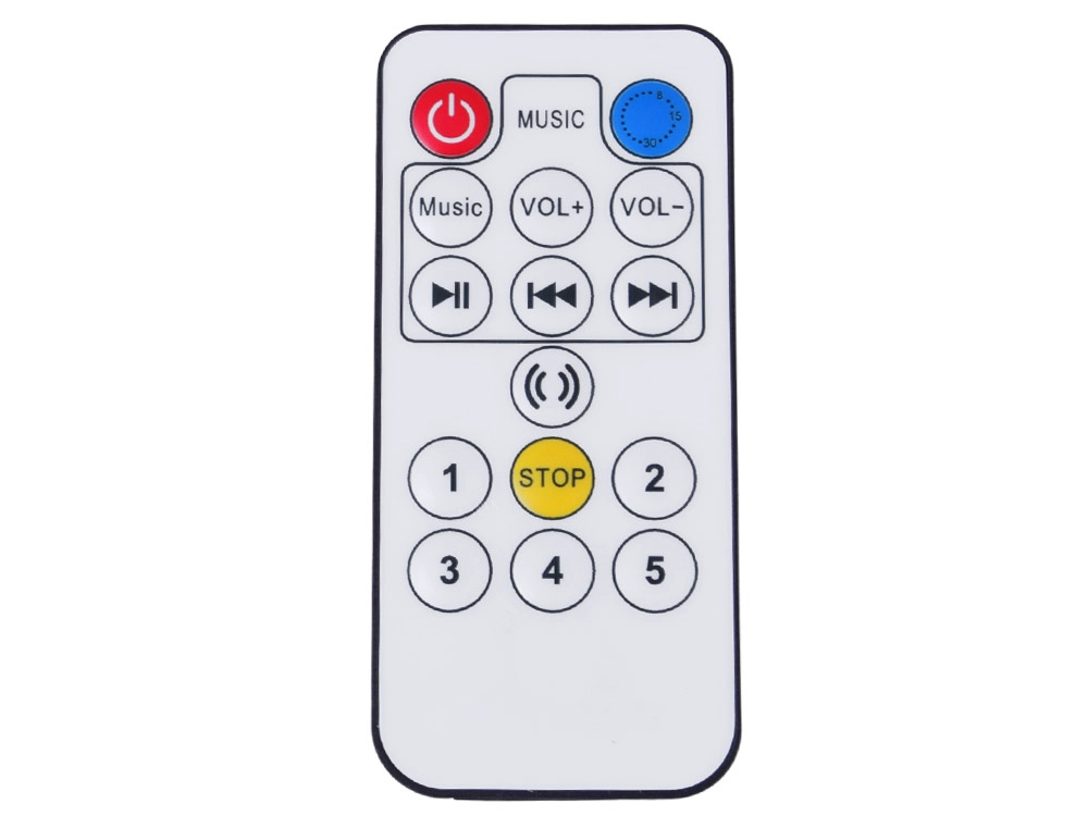 - Włącz/wyłącz, bujanie, muzyka, głośność, timer