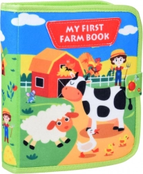 tekstylna quiet book ze stronami o farmie i filcowymi elementami na rzep