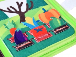 • Interaktywna nauka przez zabawę: sortowanie warzyw do koszyczków, dopasowywanie zwierzątek, otwierane okienka, sznurowanie.