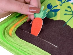 Podnoszenie okienek, wyciąganie marchewek z „grządki”, dopasowywanie kółeczek na rzep oraz sznurowanie w stodole – wszystko zaprojektowane do treningu palców i koordynacji.