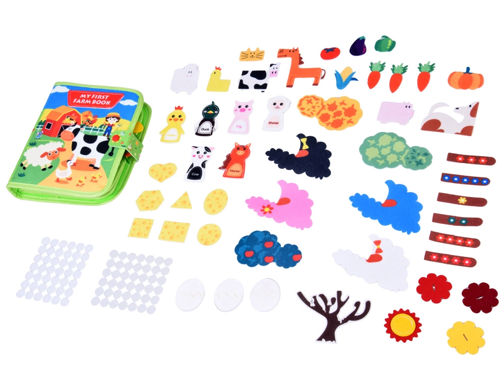 Filcowa sensoryczna quiet book farma z elementami na rzep