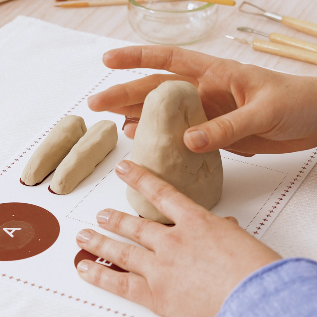 Gładka w dotyku glina modelarska łatwo się ugniata, dobrze trzyma kształt i pozwala tworzyć precyzyjne rysy twarzy oraz strukturę futerka. Idealna dla początkujących.