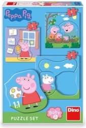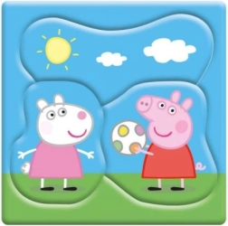 Zestaw puzzli Peppa Pig: Rodzina zapewnia świetną zabawę dla małych dzieci, które uczą się prawidłowo dopasowywać kształty. Zestaw zawiera trzy obrazki podzielone na 3–5 elementów, więc gdy Twoje dziecko poradzi sobie z najłatwiejszym, może przejść do bardziej wymagających. Każda układanka ma piękny motyw świnki Peppy, który zaciekawi każdego małego konstruktora.