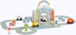 Zabawka wspiera małą motorykę, logiczne myślenie i kreatywność. Wysokiej jakości drewniane elementy z kolorowymi nadrukami zachęcają do długiej i bezpiecznej zabawy, a przy tym są kompatybilne z innymi zestawami Mini Miasto dla jeszcze większego świata fantazji.