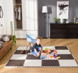 Miękka mata z pianki EVA o wymiarach 120 × 60 × 1 cm (2 elementy 60 × 60 cm) zapewni dzieciom bezpieczne i wygodne miejsce do zabawy. Jest wodoodporna, antypoślizgowa, łatwa w czyszczeniu i doskonale izoluje chłód od podłogi. Poszczególne puzzle można łączyć i tworzyć większą powierzchnię lub proste kształty 3D.