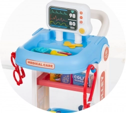Zamień pokój dziecięcy w małą klinikę dzięki temu lekarskiemu wózkowi na kółkach. Dzieci będą się świetnie bawić w realistyczną zabawę w doktora dzięki bogatemu wyposażeniu, praktycznemu uchwytowi do łatwego przemieszczania oraz pojemnym przegródkom. Zabawa wspiera wyobraźnię i kreatywność oraz pomaga oswoić lęk przed lekarzem poprzez radosne odkrywanie.