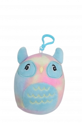 Pastelowa sówka z miękkiego pluszu i klipsem w kształcie serduszka sprawdzi się na wózku i plecaku. Bezpieczne hafty i milutkie materiały dla spokojnego tulenia.