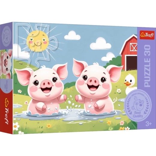 Odkryj urocze puzzle Trefl „Wesołe życie na wsi”, które zachwycą wszystkich małych miłośników zwierząt. Zestaw 30 elementów po ułożeniu tworzy radosny obrazek z dwiema świnkami bawiącymi się w kałuży. Dzięki specjalnemu papierowi kalandrowanemu elementy przyjemnie się błyszczą i łatwo łączą.
