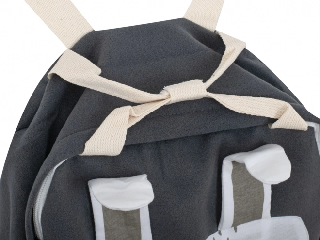 Dla maksymalnego komfortu plecak ma regulowane i szerokie szelki, które zapobiegają otarciom ramion. Nie brakuje pętelki do zawieszenia oraz łatwej pielęgnacji – w razie zabrudzenia po prostu przetrzyj wilgotną ściereczką lub wypierz w letniej wodzie z delikatnym środkiem. Neutralny szary kolor z uroczym wzorem ucieszy dzieci i rodziców.