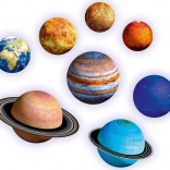 Odkryj piękno naszego Układu Słonecznego w interaktywnej formie. Zestaw zawiera 8 kulistych puzzli 3D planet o różnych średnicach, dwa pierścienie planet, Słońce z twardej tektury oraz Księżyc z piankowego polistyrenu. Każdy element jest precyzyjnie uformowany i po złożeniu tworzy stabilne i gładkie kule bez potrzeby użycia kleju.