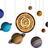 Złóż 8 planet w różnych rozmiarach i kolorach, uzupełnij je pierścieniami, Księżycem i wyeksponuj na podstawkach lub zawieś.