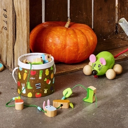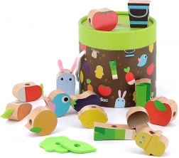 Ta drewniana przeplatanka o tematyce ogrodowej oferuje dzieciom bogactwo kształtów i kolorów, które pokochają. Dzięki bezpiecznym i gładko wykończonym elementom mali odkrywcy mogą ćwiczyć nawlekanie, sortowanie i nazywanie przedmiotów z farmy. Kompaktowe opakowanie idealnie sprawdzi się w podróży i podczas uporządkowanej zabawy w domu.
