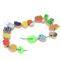 Zabawka wykonana jest z wysokiej jakości drewna, malowana bezpiecznymi dla zdrowia farbami. Tekstylny sznurek z bezpiecznymi zapięciami ułatwia pewne i wygodne nawlekanie, dzięki czemu dzieci mogą bawić się samodzielnie lub z rodzicami. Przeplatanka wspiera rozwój małej motoryki, logicznego myślenia i percepcji wzrokowej.
