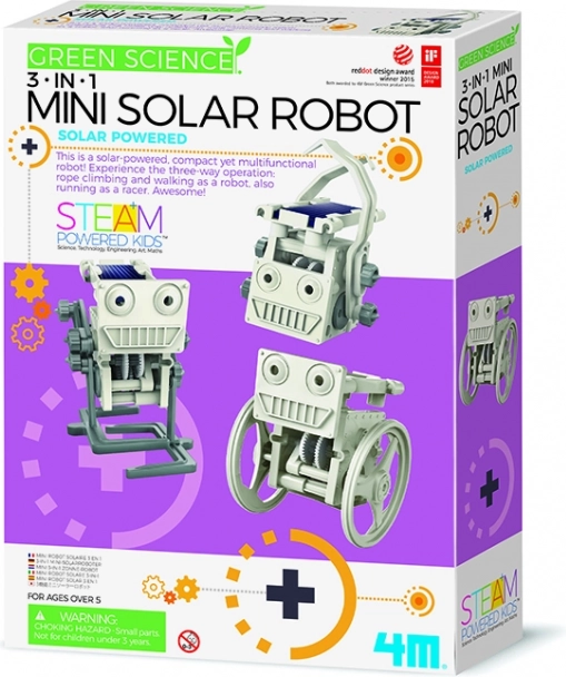 Odkryj świat energii słonecznej z tą innowacyjną zabawką konstrukcyjną Roboty słoneczne 3 w 1. Idealna dla młodych konstruktorów, którzy chcą poznać podstawy odnawialnych źródeł energii i robotyki.