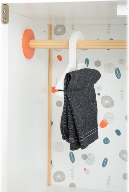 Trwała drewniana konstrukcja, stabilne wykonanie i bezpieczne, zaokrąglone krawędzie zapewniają wygodną i bezpieczną zabawę. Szafka wspiera samodzielność, poczucie porządku i rozwija wyobraźnię podczas zabawy w opiekę nad lalkami.