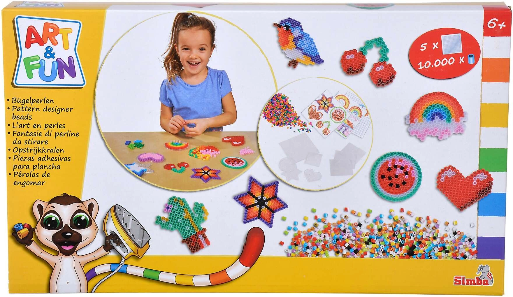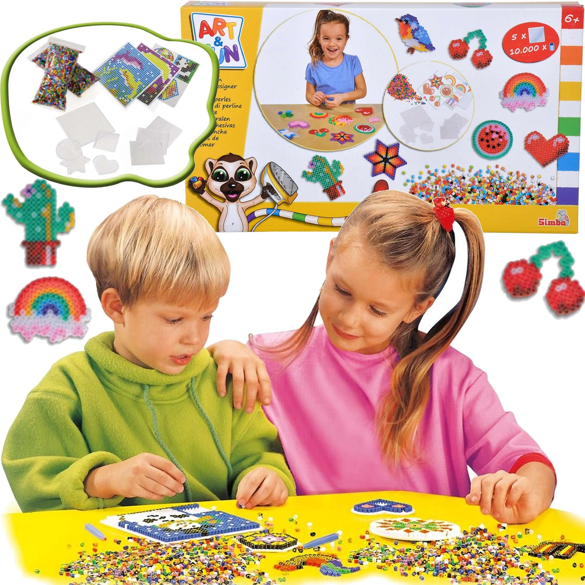 Odkryj świat pikselowej twórczości z zestawem koralików do zaprasowywania ART & FUN od SIMBA. W opakowaniu znajdziesz 10 000 kolorowych koralików oraz 5 wielokrotnie używalnych podkładek, na których ułożysz dowolne motywy. Po przykryciu papierem do pieczenia i zaprasowaniu przez osobę dorosłą koraliki połączą się i stwardnieją w trwałą dekorację.