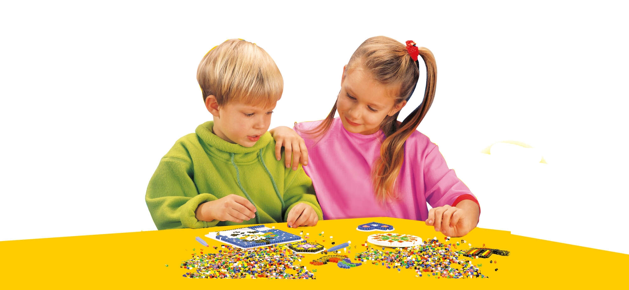 Przezroczyste szablony ułatwiają układanie motywów, a inspirujące wzory pomagają dzieciom szybko zacząć i opanować technikę.