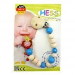 Praktyczny klips na smoczek w delikatnym, jasnoniebieskim kolorze utrzymuje smoczek zawsze pod ręką i w czystości. Posiada metalowy klips do bezpiecznego przypięcia do ubrania oraz uniwersalny silikonowy pierścień do mocowania większości smoczków. Wyprodukowano w Niemczech z wysokiej jakości drewna z nieszkodliwymi farbami, odpornymi na ślinę i pot.