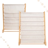 Regał wykonany z wysokiej jakości drewna i tekstyliów, co zapewnia łatwe czyszczenie. Dzięki solidnej konstrukcji i wytrzymałym materiałom będzie służył przez wiele lat i z łatwością pomieści cięższe książki, gdy twoje dziecko będzie rosło.